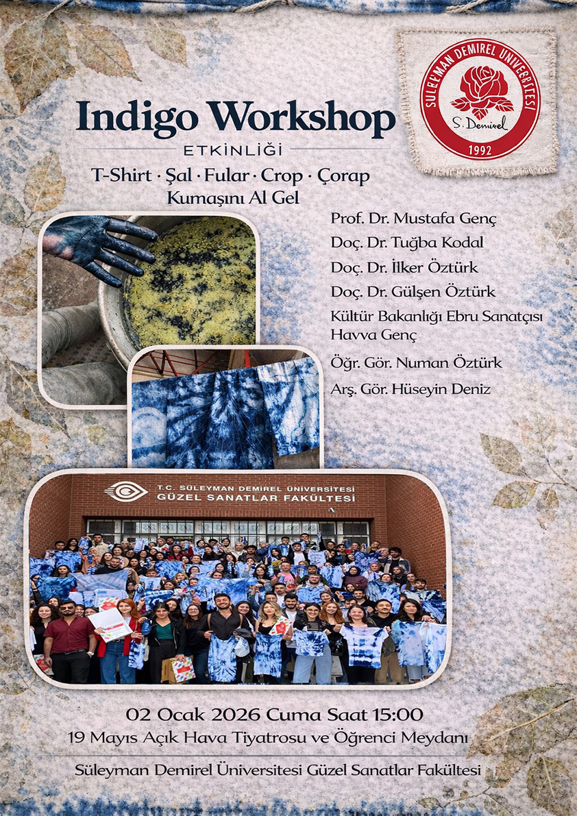 Süleyman Demirel Üniversitesi (SDÜ) Güzel Sanatlar Fakültesi (GSF) öğrencileri, 2 Ocak 2026 Cuma günü 15.00- 17.00 saatleri arasında ''Kök Boya Etkileşimli Atölye'' etkinliğinde bir araya geldi.
