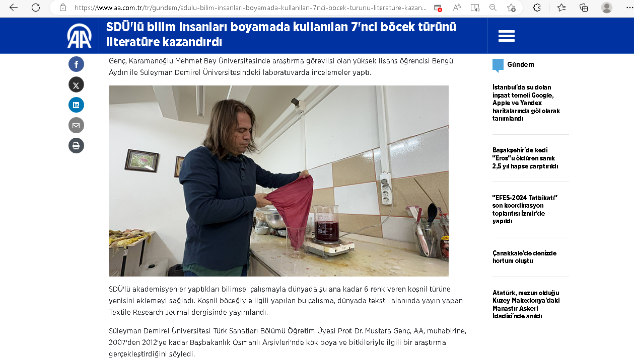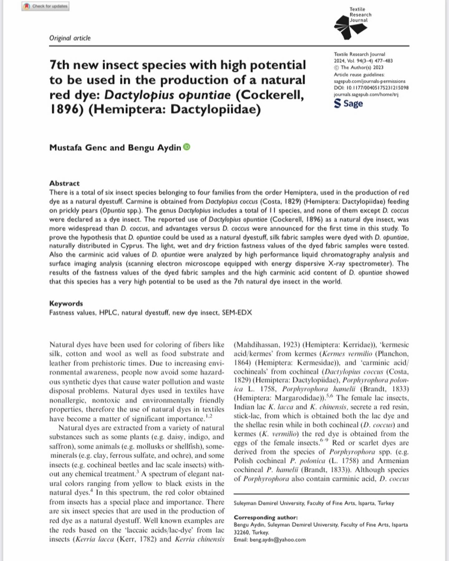 Kırmızı ve mor renklerin elde edilmesinde kullanılabilecek olan bu tür keşfini Şubat 2024 tarihinde Textile Research Journal'de (Tekstil Araştırma Dergisi) yayımladık.