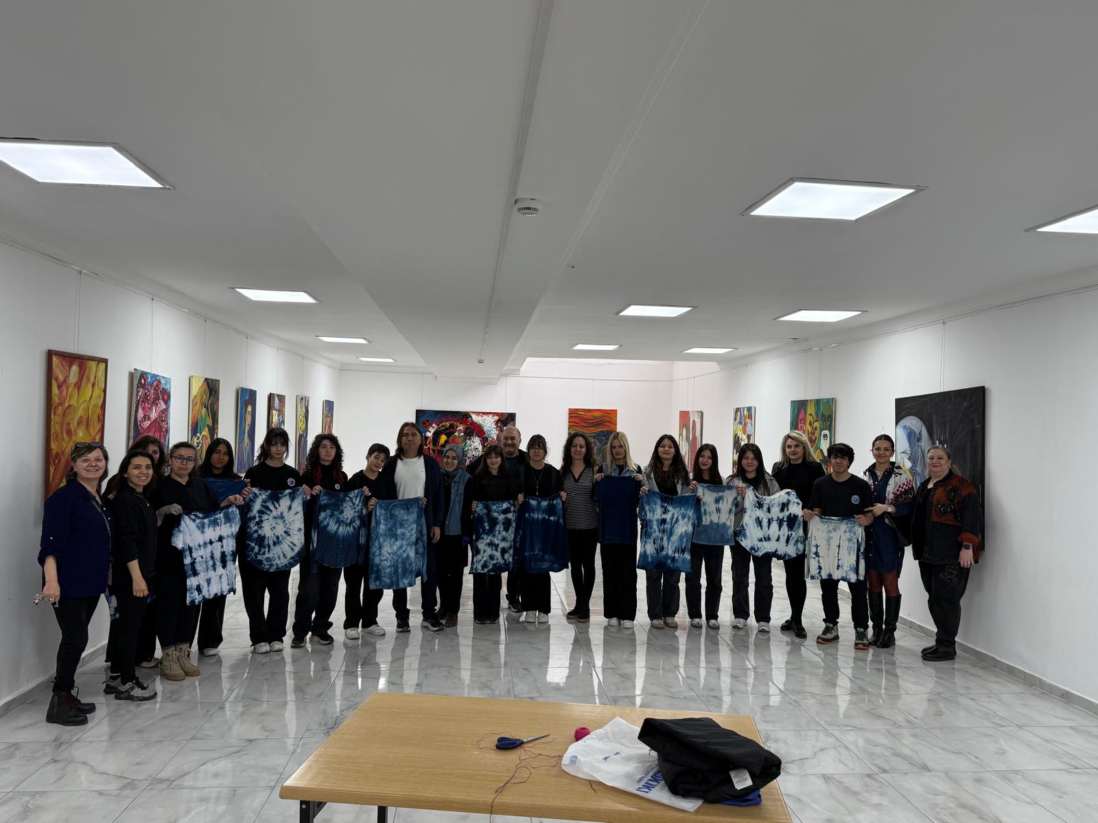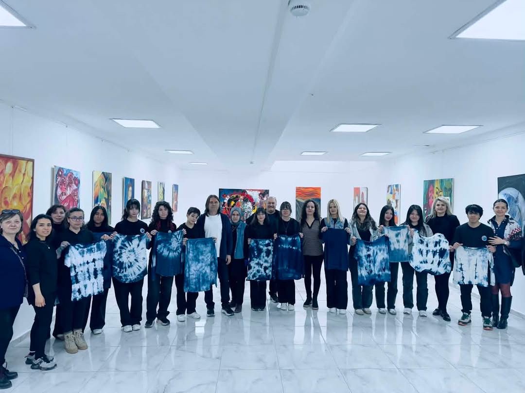 Prof. Dr. Genç, Doç. Öztürk, Doç. Kodal ve Dr. Öğretim Üyesi Esra Karakullukçuoğlu, 60 öğrencinin katıldığı indigo ve çivit bitkileri ile tişört ve gömlek boyama etkileşimli atölyesi gerçekleştirdi.