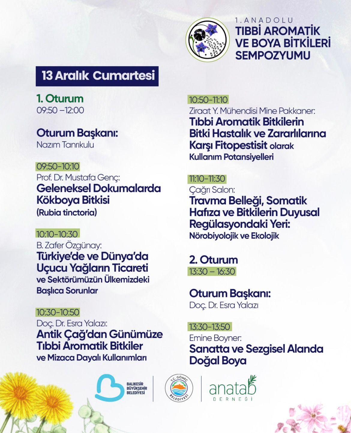 Balıkesir'e bağlı Gömeç İlçesi'nde 12- 14 Aralık 2025 tarihleri arasında I. Anadolu Tıbbi Aromatik ve Boya Bitkileri Sempozyumu düzenlendi.